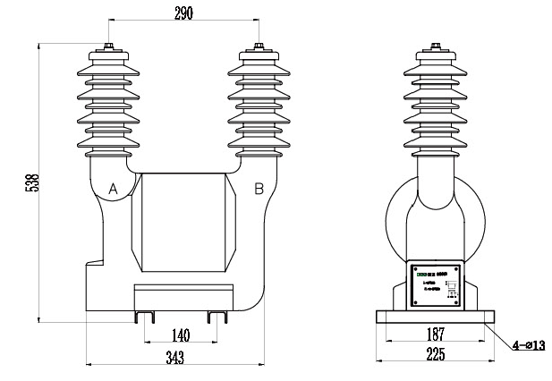 本型電壓互感器為環(huán)氧樹脂真空澆注全封閉單相戶外結構, 主要適用子額定頻率為50Hz或60Hz, 額定電壓10kV及以下電力系統(tǒng)中作電能計量、 電壓測量用。
